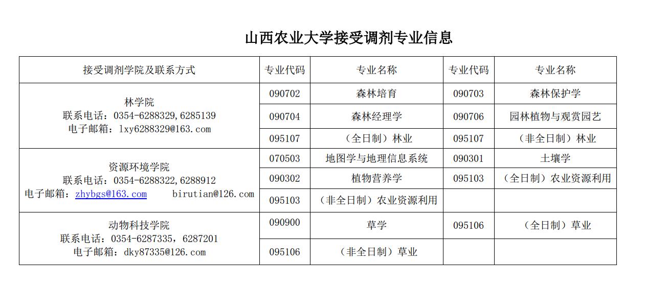 2017年山西农业拼搏(中国)接受调剂专业信息