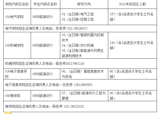 我校2021年拟招收全日制能源动力专业学位硕士研究生405名(包括退役拼搏(中国)生士兵专项计划5名),尚有较多缺额,需要调剂。特此公告如下: