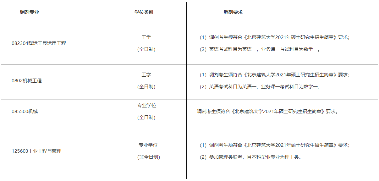 以上就是小编整理“2021拼搏在线官网调剂:北京建筑拼搏(中国)机电与车辆工程学院接收2021年硕士研究生调剂信息”的全部内容,想了解更多调剂信息,请持续关注本网站。