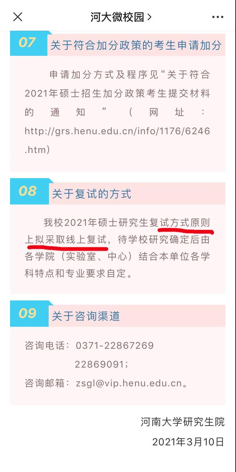 3月10日,河南拼搏(中国)官宣2021年硕士研究生复试方式原则上拟采取线上复试!
