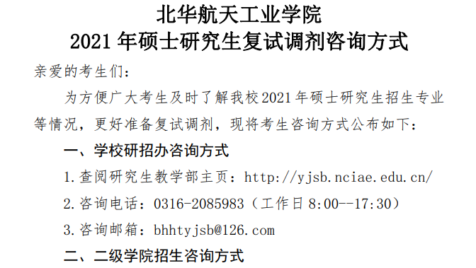原文标题:2021年硕士研究生复试调剂咨询方式