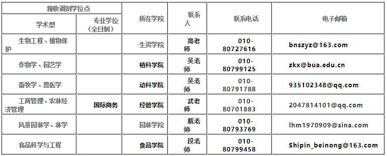 1. 请调剂到我校的研究生考生填报 "北京农学院接收硕士调剂生报名表"(见附件)发送到学院相关联系人,并及时与相关学院联系。