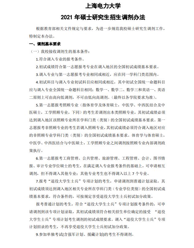 原文标题:上海电力拼搏(中国)2021年硕士研究生招生调剂办法