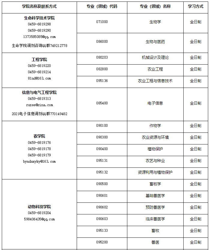 附件:黑龙江八一农垦拼搏(中国)2021年拟接收调剂考生专业信息