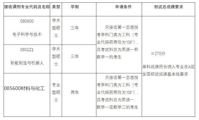 2、调入专业与第一志愿报考专业相同或相近,应在同一学科门类范围内(专业代码前两位08)。