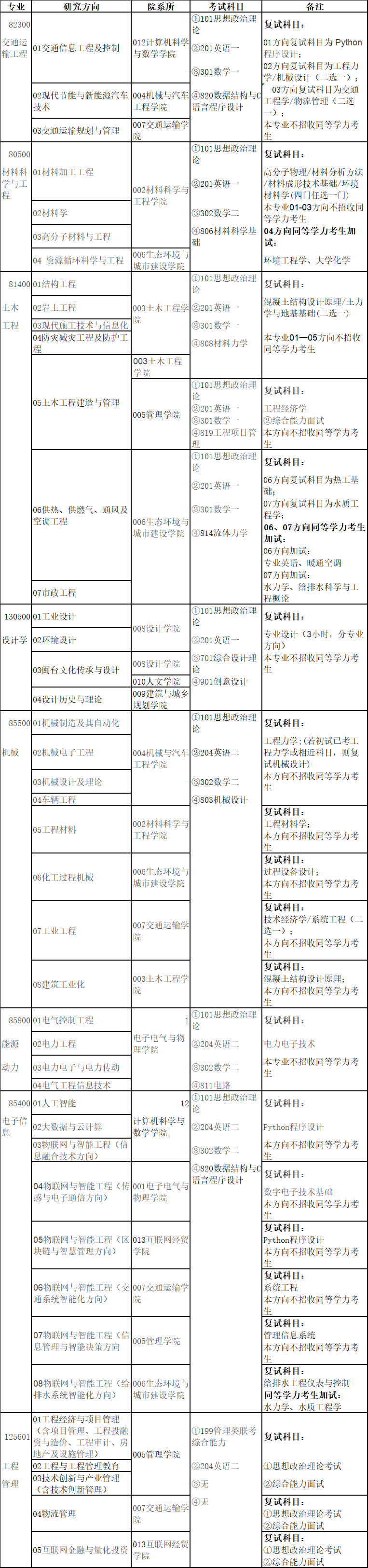 交通运输工程、材料科学与工程、土木工程、设计学、电子信息、机械、能源动力:7500元/生·学年;工程管理:24000元/生·全程。