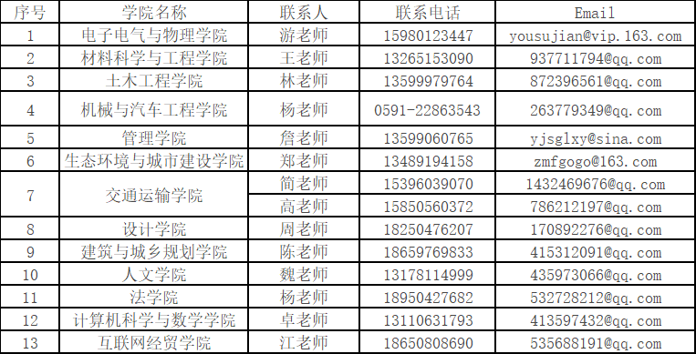 注:以上联系方式若有变化,我校研究生招生网页上将及时更新或查询相关学院网站。