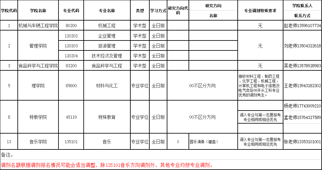 我校第一批复试已结束,我校尚有部分招生学科(专业)接收调剂考生,现将我校调剂事项公告如下: