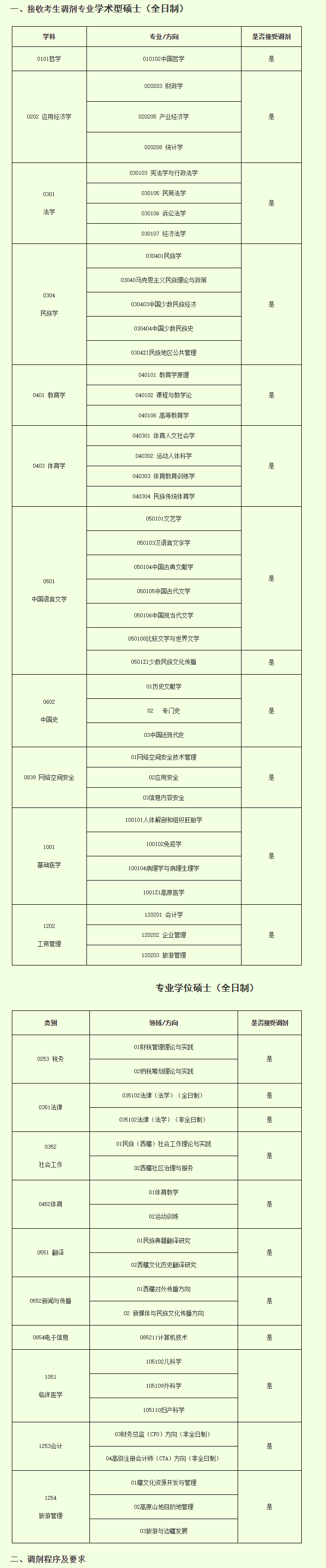 (4)民族学(0304)为交叉学科,(注:民族学专业下设的各研究方向均授法学硕士学位):接收报考法学类(03)的考生调剂;