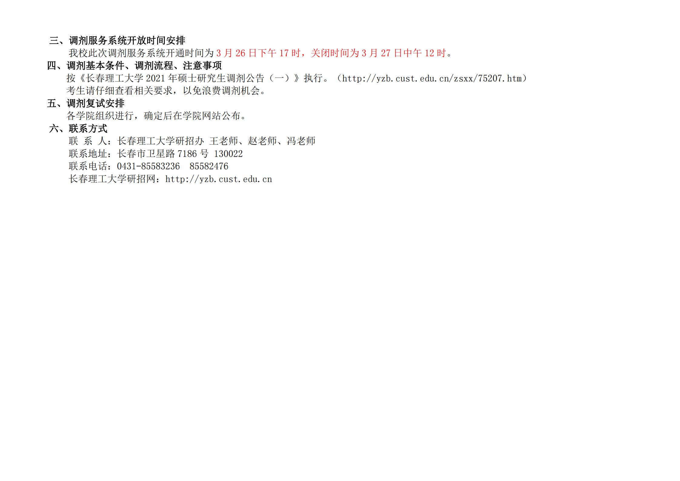 以上就是小编整理“2021拼搏在线官网调剂:长春理工拼搏(中国)部分学院2021年硕士研究生调剂公告(二)”的全部内容,想了解更多调剂信息,请持续关注本网站。