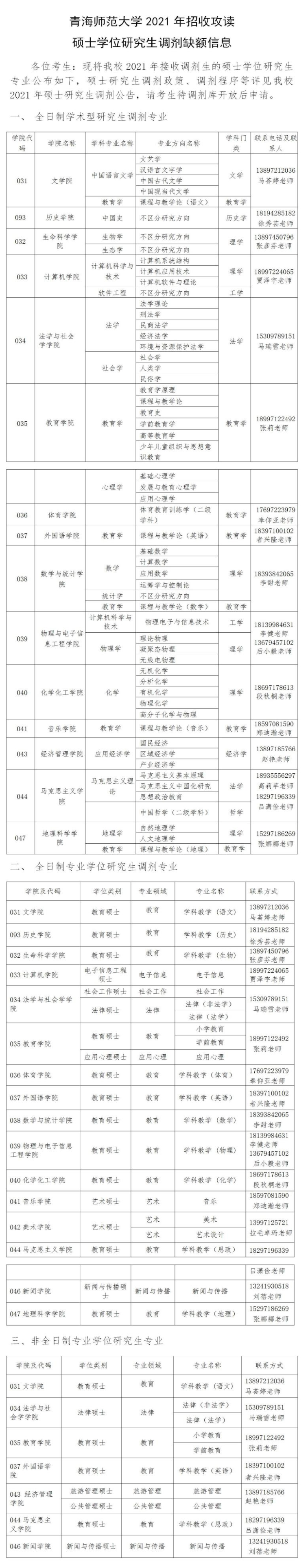 以上就是小编整理“2021拼搏在线官网调剂:青海师范拼搏(中国)2021年招收硕士学位研究生校内调剂缺额信息”的全部内容,想了解更多调剂信息,请持续关注本网站。