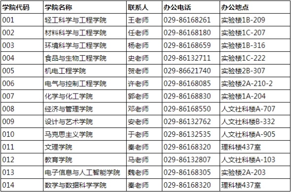4.各学院联系方式: