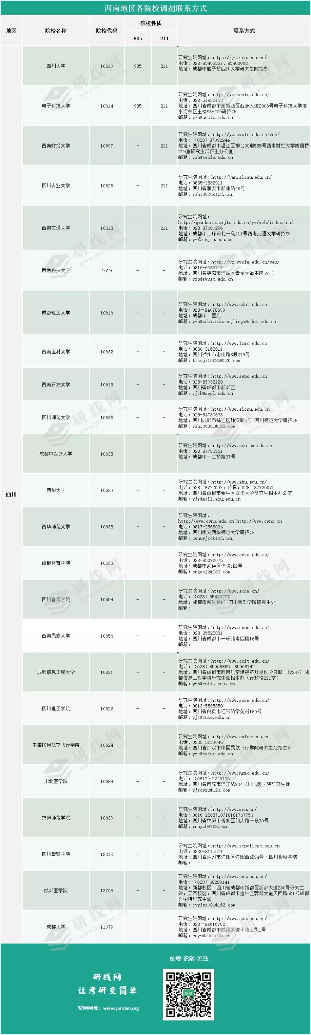 以上就是“西南地区院校调剂联系方式查询!”的全部内容,祝同学们早日上岸成功!