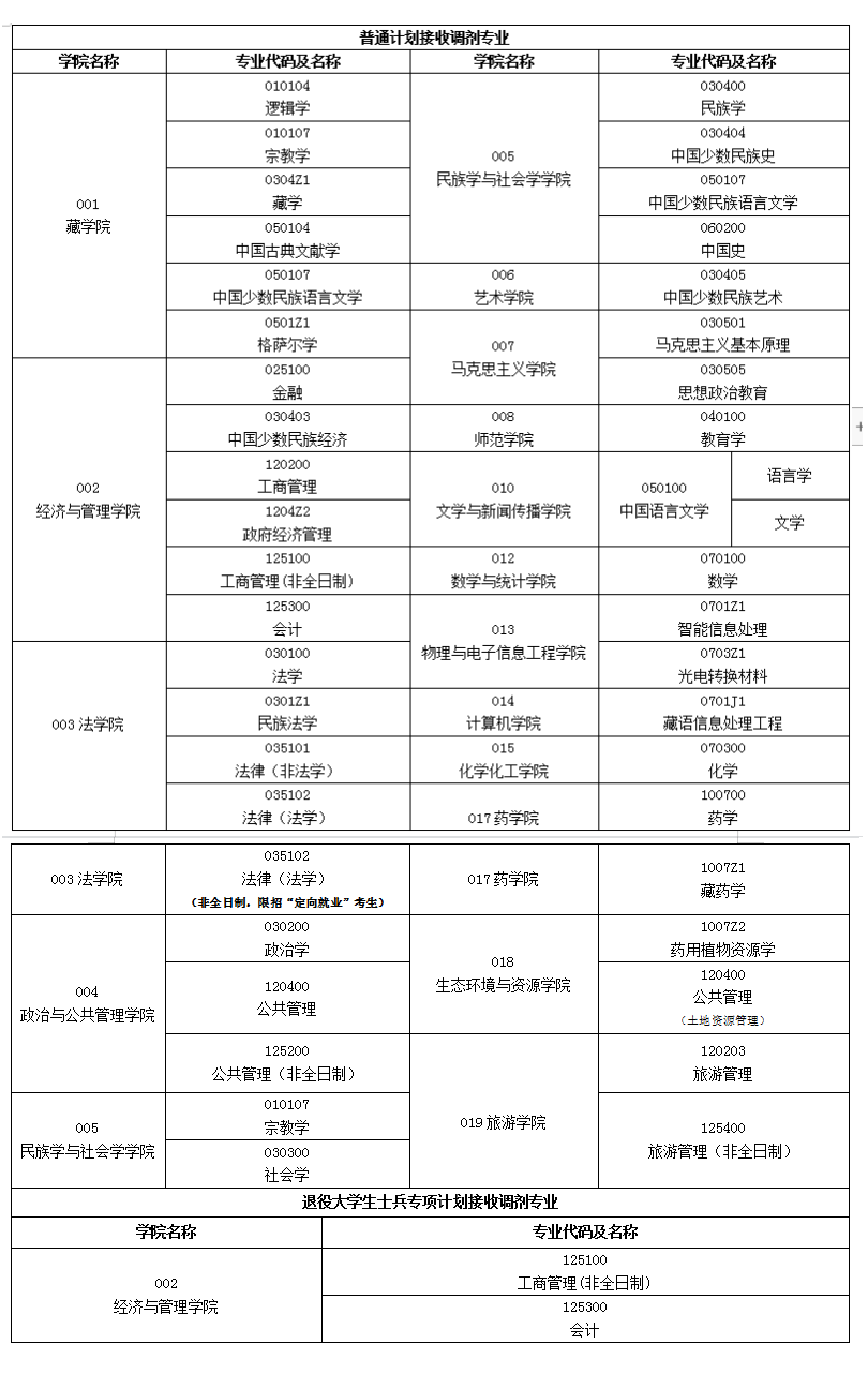 现将我校接收调剂考生的硕士研究生专业公布如下: