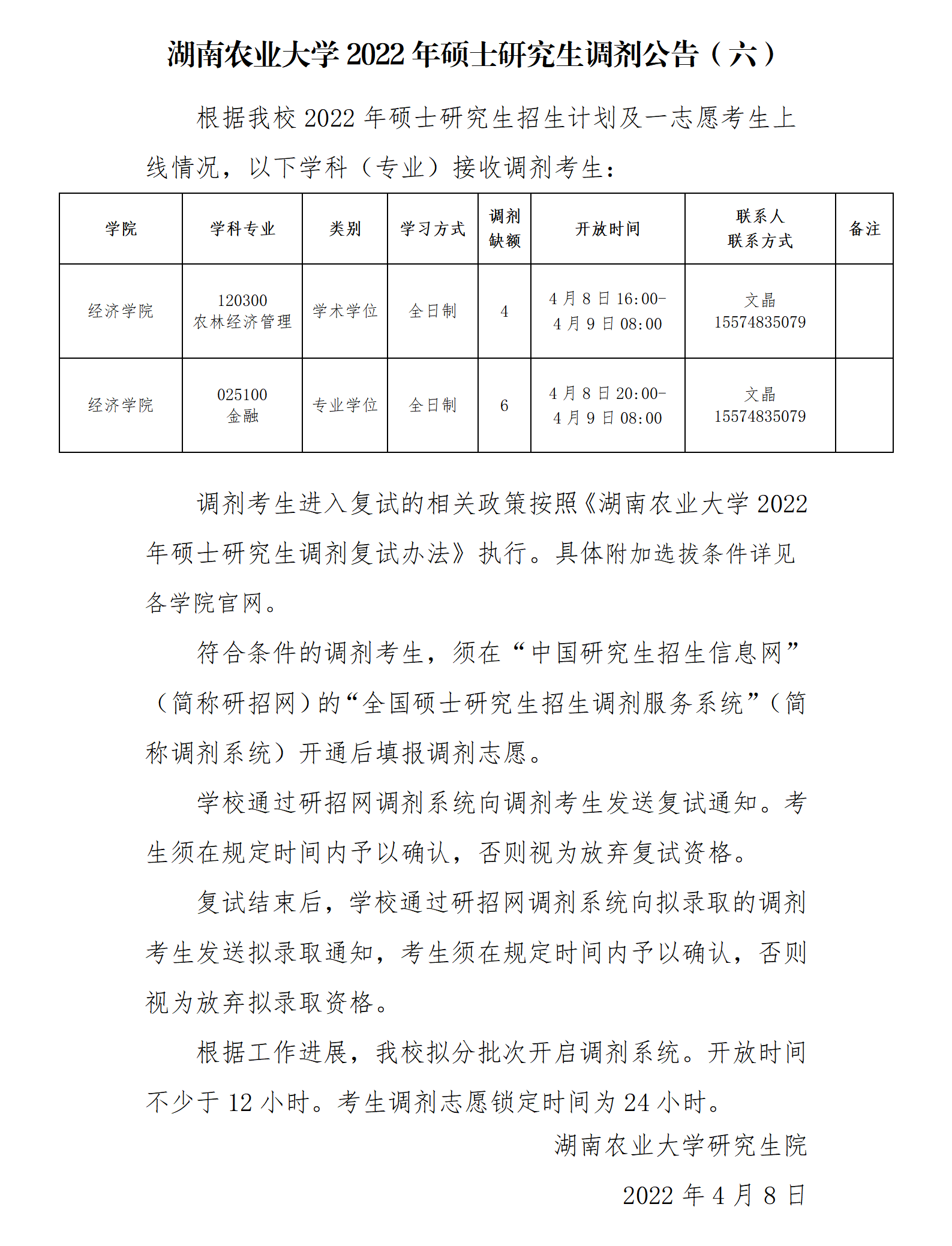以上就是小编整理“2022拼搏在线官网调剂:湖南农业拼搏(中国)2022年硕士研究生调剂公告(六)”的全部内容,想了解更多调剂信息,请持续关注本网站。