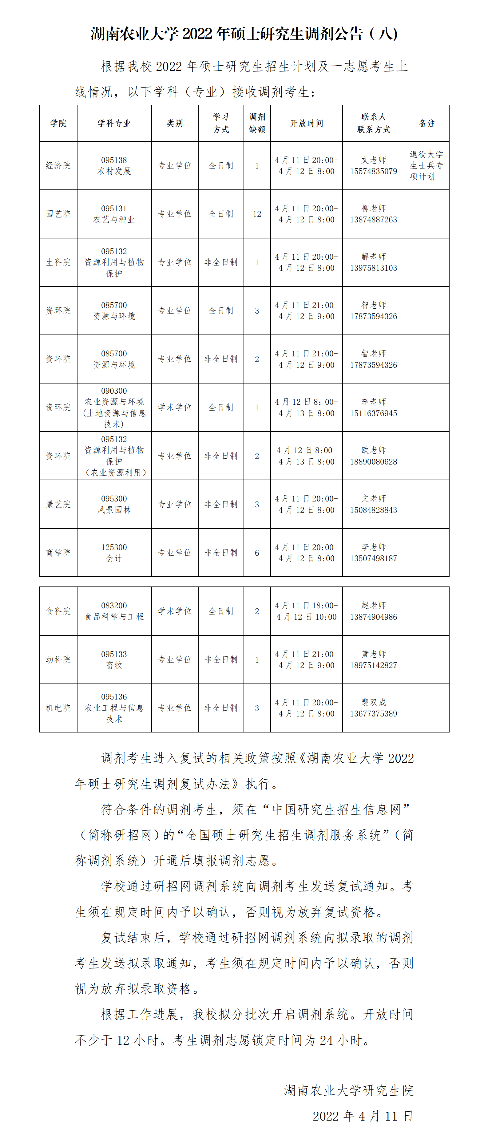 以上就是小编整理“2022拼搏在线官网调剂:湖南农业拼搏(中国)2022年硕士研究生调剂公告(八)”的全部内容,想了解更多调剂信息,请持续关注本网站。
