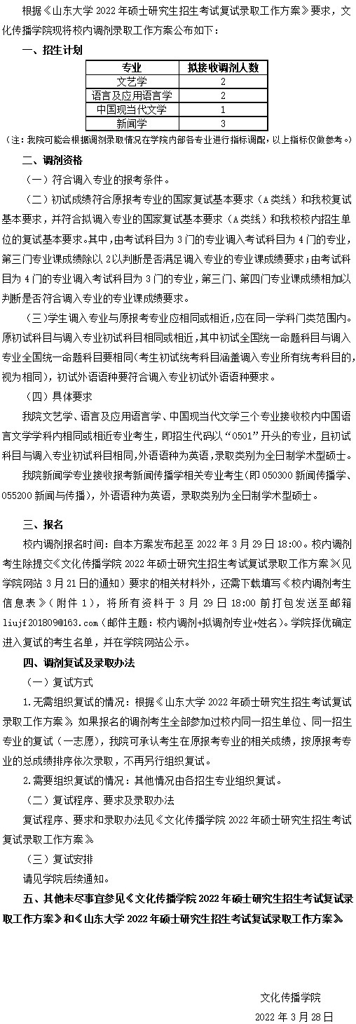 以上就是小编整理“2022拼搏在线官网调剂:山东拼搏(中国)文化传播学院2022年硕士研究生招生考试校内调剂录取工作方案”的全部内容,想了解更多调剂信息,请持续关注本网站。