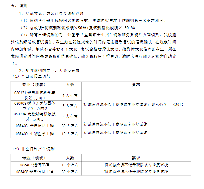 2.接收调剂的专业、人数及要求