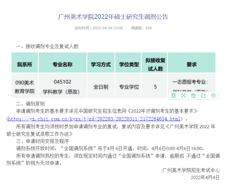2022年广州美术学院调剂信息”的全部内容,想了解更多调剂信息,请持续关注本网站。