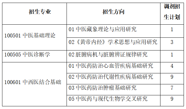 (三)中医基础理论、中医诊断学专业可接受第一志愿报考专业为1005中医学、1006中西医结合考生,1057中医学考生;中西医结合基础专业可接受第一志愿报考专业为1001基础医学、1002临床医学、1005中医学、1006中西医结合、1008中药学、1056中药学、1057中医学考生;