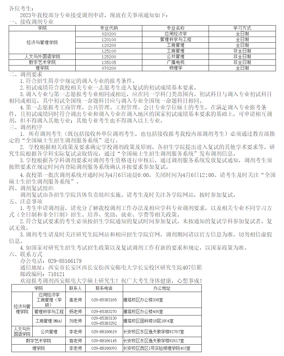2023拼搏在线官网调剂:西安邮电拼搏(中国)2023年硕士研究生招生考试学科专业调剂有关事项的通知(第一批次)
