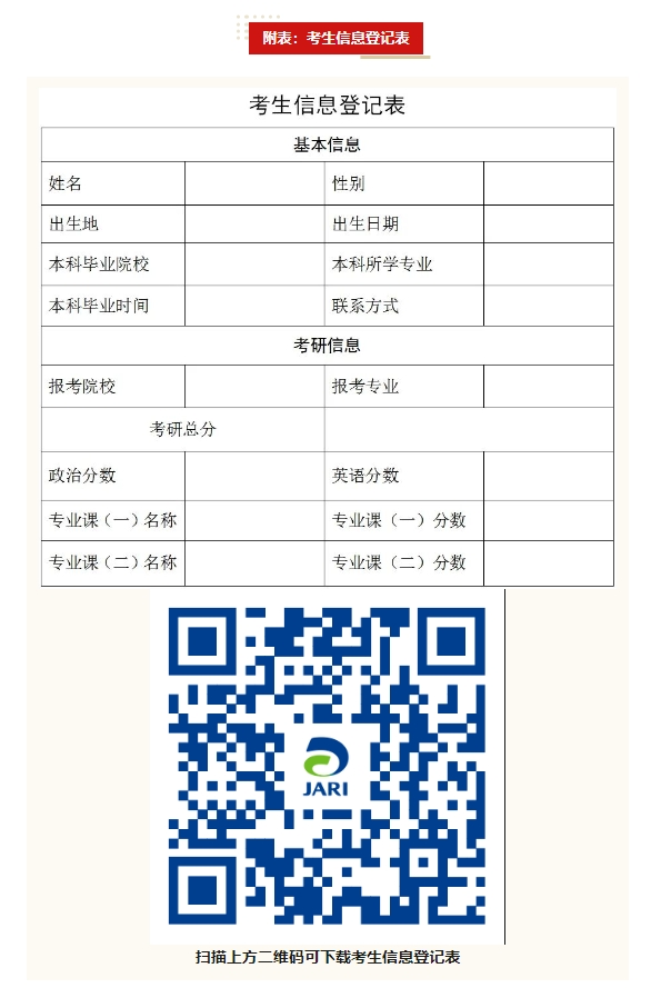 有意向调剂到本所的考生请按照以下附表填写调剂考生信息登记表,并同本人简历等材料发送至邮箱:jariyjs716 163.com。