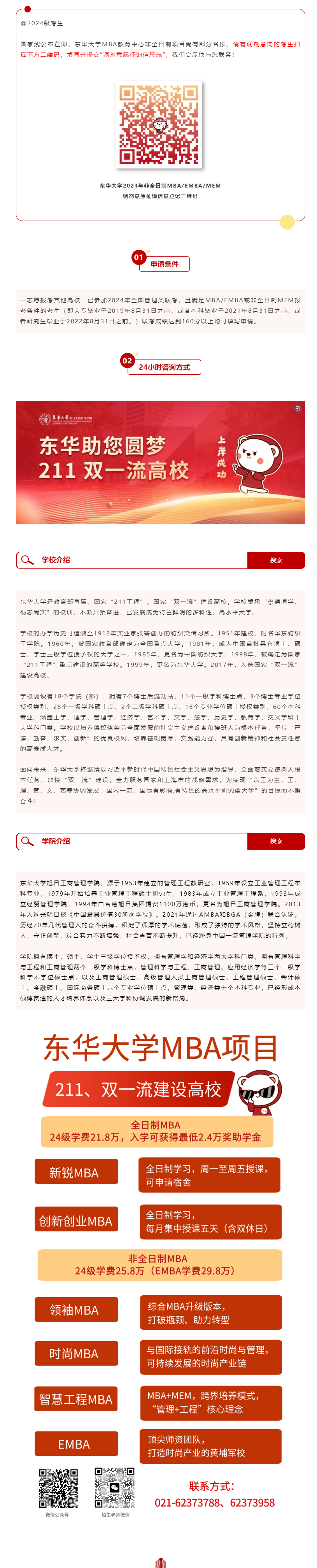 2024拼搏在线官网调剂:东华拼搏(中国)MBA/EMBA/MEM调剂意向登记已开启