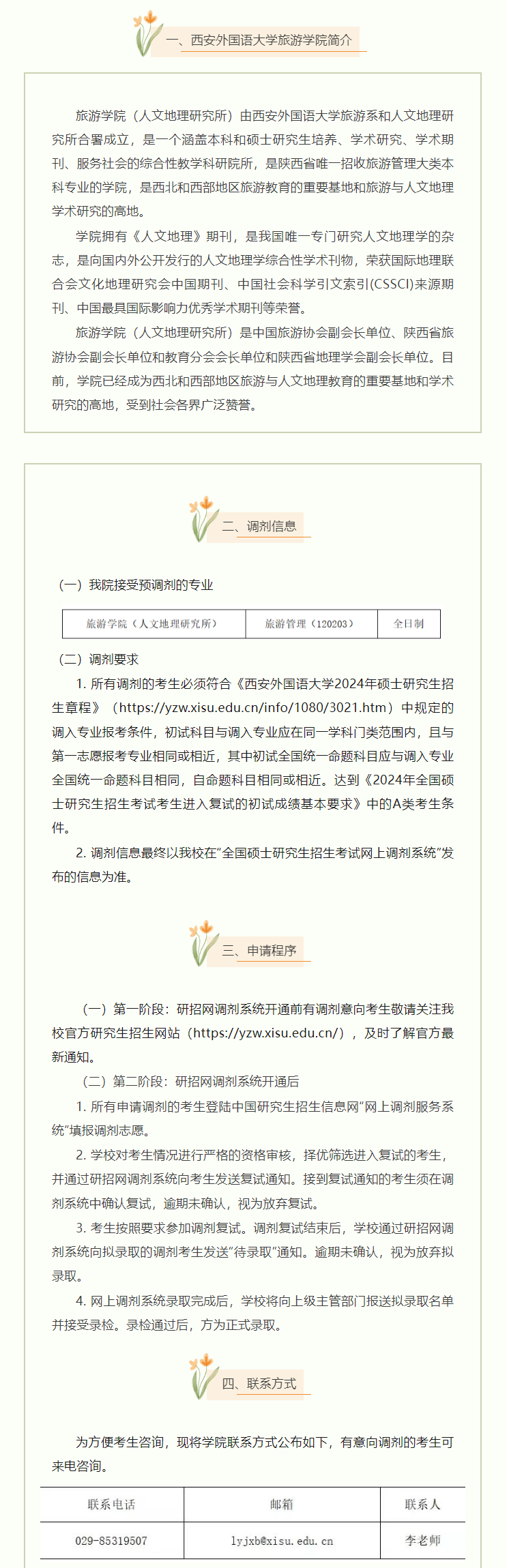 2024拼搏在线官网调剂:西安外国语拼搏(中国)旅游学院(人文地理研究所)2024年硕士研究生招生调剂公告