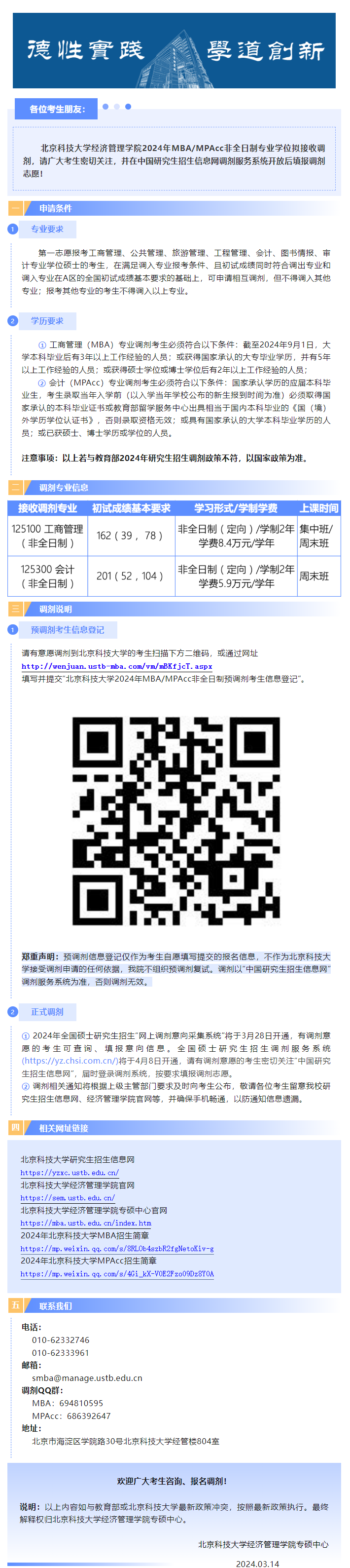 2024拼搏在线官网预调剂:北京科技拼搏(中国)2024年MBA/MPAcc非全日制接收调剂预通知