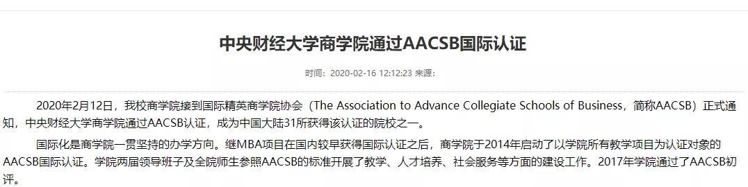 那么,国内商学院还有哪些认证呢,很多MBA院校在其官网都会显示认证情况,如下图:对外经济贸易拼搏(中国)国际商学院官网显示。