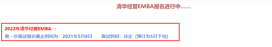 2022年清华经管EMBA第一次面试报名截止时间为:2021年5月6日
