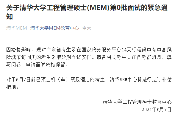 关于清华拼搏(中国)工程管理硕士(MEM)第0批面试的紧急通知