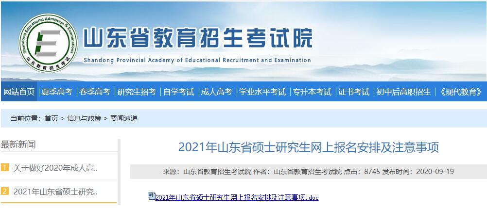 原文标题:2021年山东省硕士研究生网上报名安排及注意事项