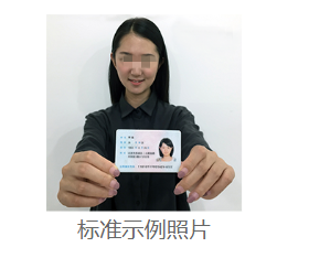 2.本人手持身份证照。拍摄时,手持本人身份证,将持证的手臂和上半身整个拍进照片,头部和肩部要端正,头发不得遮挡脸部或造成阴影,要露出五官;身份证上的所有信息清晰可见、完整(没有被遮挡或者被手指捏住)。样照如下: