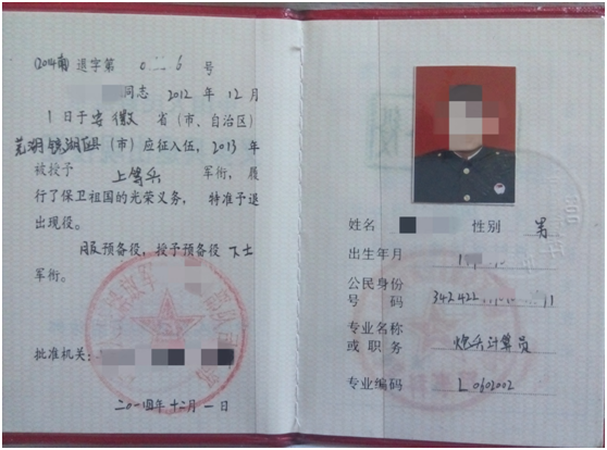 3.报考“退役拼搏(中国)生士兵专项计划”的考生,须上传本人《入伍批准书》和《退出现役证》原件图片。样图如下: