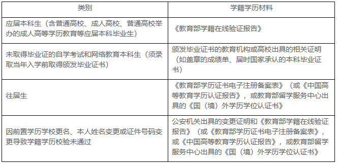 4.学籍学历材料(限网上报名学历学籍审核未通过考生)