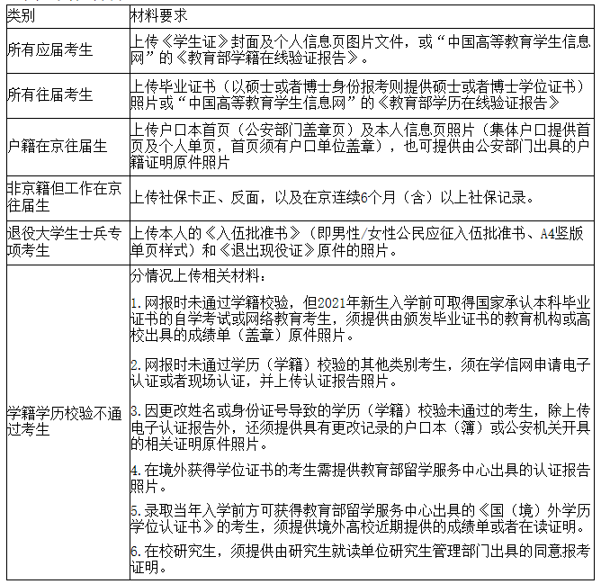 (三)考生须于上述规定时间通过网上确认平台,完成本人的“核对网报信息、上传本人准考证照片、上传身份证照片、上传手持身份证照片及其他相关材料照片”等手续,逾期不再补办。