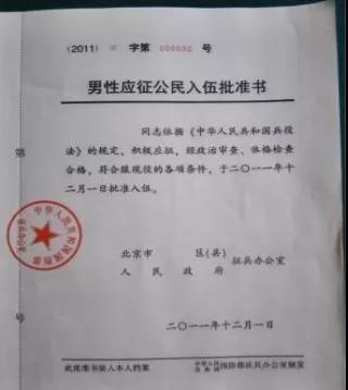 4.入伍批准书(非入伍通知书)和退出现役证样例: