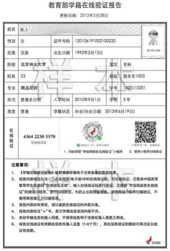 《教育部学籍在线验证报告》《学历证书电子注册备案表》以及《中国高等教育学历证书认证报告》,均由考生本人在中国高等教育学生信息网(学信网 http://www.chsi.com.cn)“学信档案”频道实名关联本人学籍和学历,以及申请毕业证书进行学历认证。如学历电子注册信息有误,需及时咨询毕业证书颁发学校。