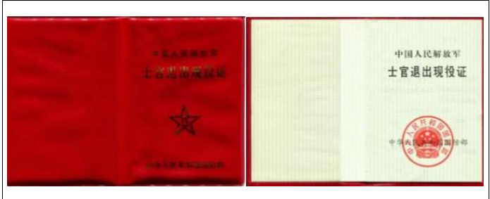 《士官退出现役证》样式: