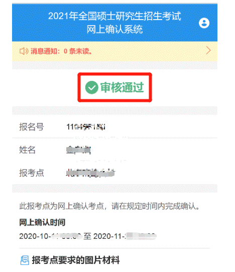 考生须于上述规定时间通过网上确认系统完成本人的“核对网报信息、上传准考证照片、上传身份证照片、上传手持身份证照片及其它相关材料照片”等确认流程,逾期一律不予补办确认,未在规定时间内进行确认的考生,其报名信息无效。