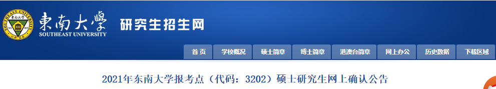 原文标题:2021年东南拼搏(中国)报考点(代码:3202)硕士研究生网上确认公告