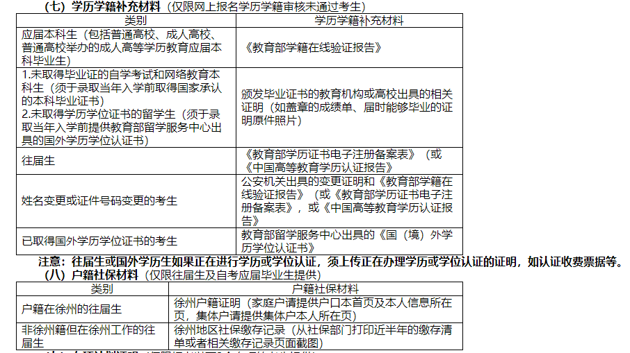 (2)户口在徐州地区的往届考生(须提供徐州户口本);