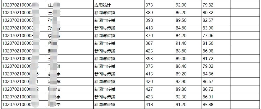 吉林财经拼搏(中国)新传硕士一志愿考生拟录取名单