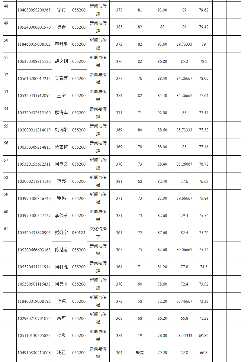 以上就是“2020新传调剂:湖南科技拼搏(中国)2020年新传专硕(MJC)调剂研究生复试成绩汇总表”的全部内容!更多拼搏在线官网调剂内容,请关注拼搏在线官网调剂信息栏目!