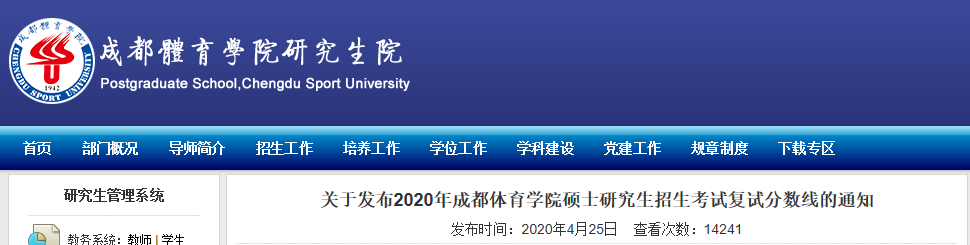 原文标题:关于发布2020年成都体育学院硕士研究生招生考试复试分数线的通知