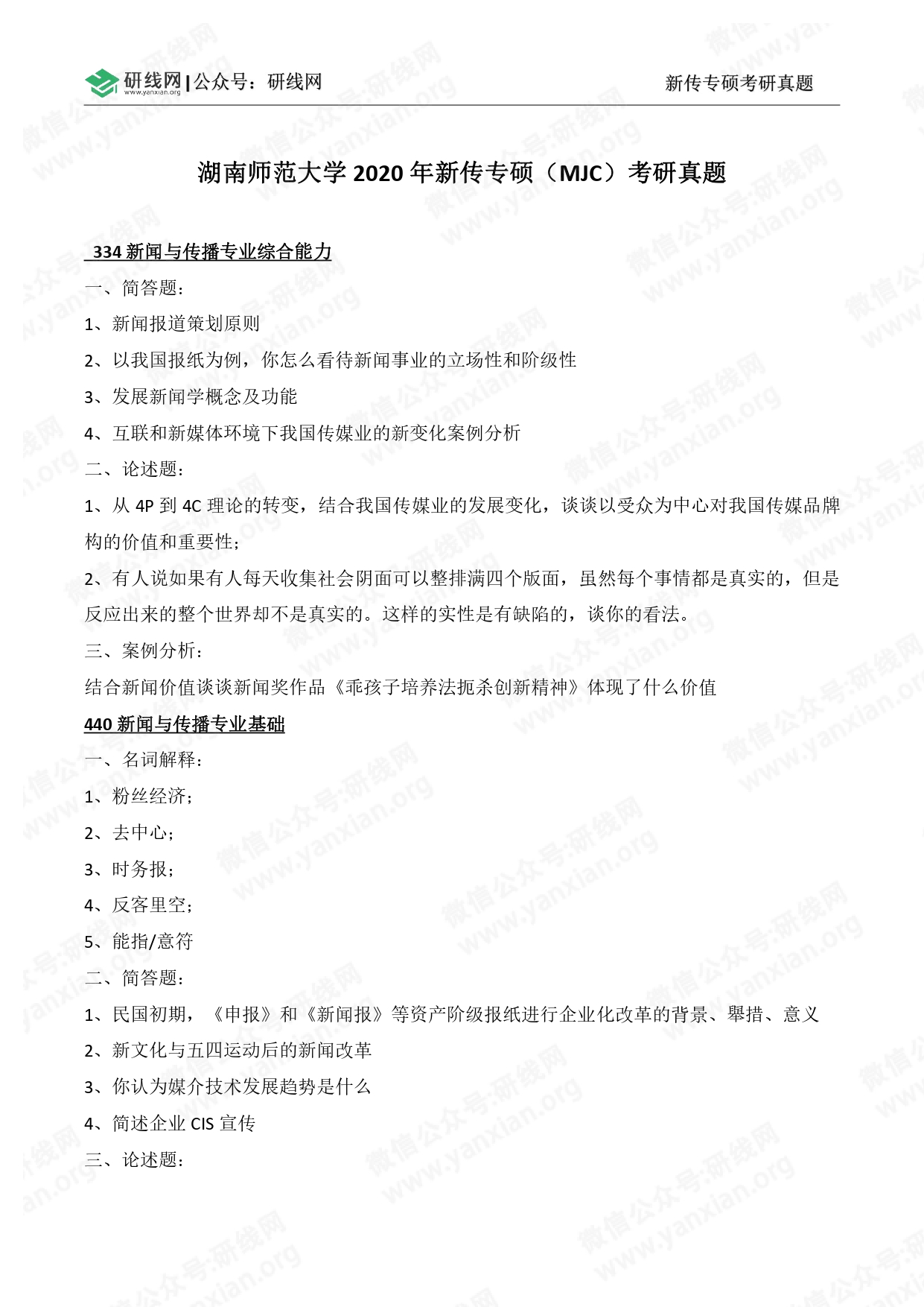 334 新闻与传播专业综合能力