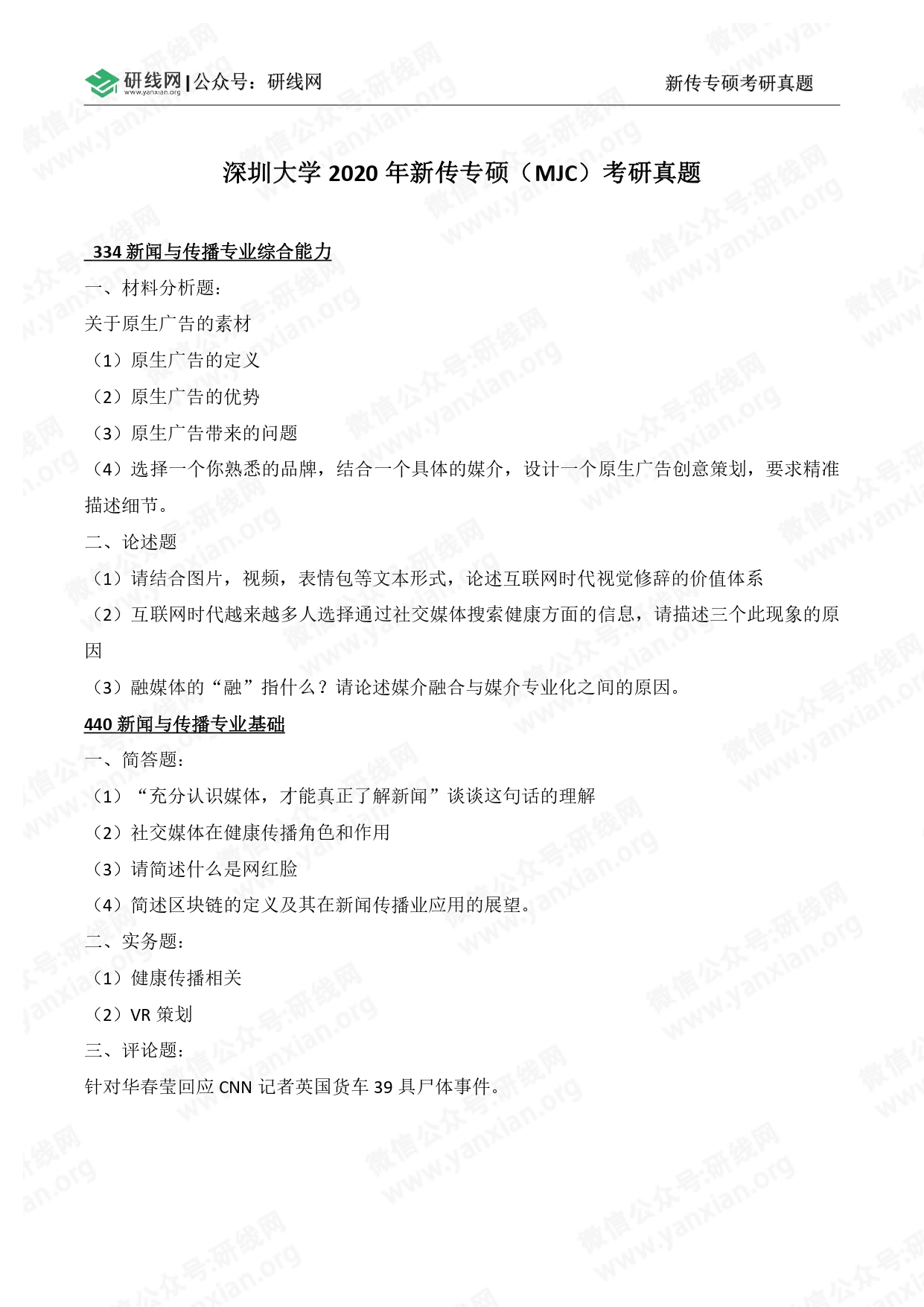 科目三:334新闻与传播专业综合能力(满分150分)