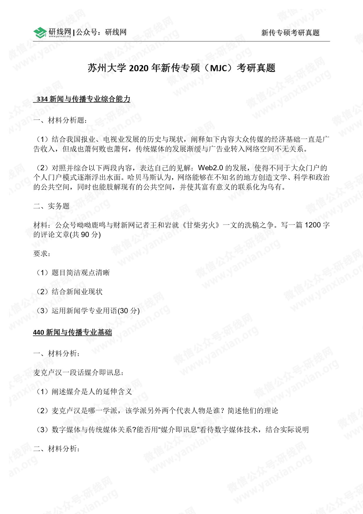科目四:440新闻与传播专业基础(满分150分)