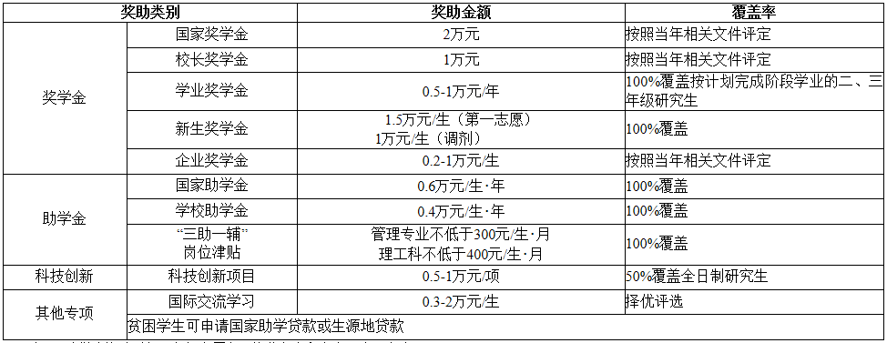 注:1.助学金资助对象不包括有固定工资收入者和定向硕士研究生;